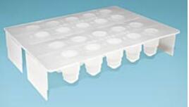 聚乙烯材料,薄的透視的尖端便于樣本包埋時快速的定向;樣本包埋塊可以用拇指輕輕向上頂出;20個管子各自獨立,允許空氣自由流動(不會局部聚集溫度),聚合條件統(tǒng)一;模具設(shè)計嚴(yán)密,適合厭氧包埋樹脂的使用,一個支架疊放在另一個有包埋樹脂的支架上方就可以隔絕空氣;模具也可以用來存儲樹脂切片。