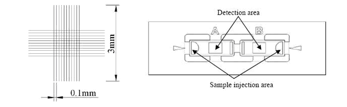 計數(shù)板的外觀尺寸:25*75*1.6mm,計數(shù)池深度0.02mm,每池的加樣體積數(shù)3µl?。