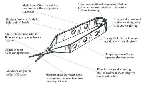來(lái)自laschal的剪刀,其制造技術(shù)有了革命性的突破。獨(dú)特的設(shè)計(jì)使得你的使用不用區(qū)分左右手;高于普通剪刀3倍的剪切角度降低組織損傷度;刀刃使用不會(huì)變得松弛;便于拿取,無(wú)柄環(huán)狀結(jié)構(gòu);高品質(zhì),低價(jià)位;防腐蝕,防斷裂。