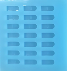 推薦經(jīng)濟實惠的國產(chǎn)硅膠21孔包埋板,淡藍(lán)色,板大小為72×66×6mm,孔大小為14×5×3mm。可以與樹脂包埋試劑盒配套使用,如Embed812(Epon812),Spurr試劑盒等。