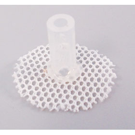 與所有標準的皮膚扣件一樣,小鼠的皮膚扣包括硅膠筒和圓形滌綸網(wǎng)狀小片兩部分,是動物的手術中不可或缺的物件。硅膠筒內(nèi)徑為0.123英寸;滌綸網(wǎng)狀小片的直徑大約1英寸。皮膚扣作為導管通過皮膚的一個通道,協(xié)助完成導管的取樣或定量給藥工作。皮膚扣可替代小動物的jacket,可保護導管通過點的皮膚免受損傷,降低感染的幾率。也可與外徑為0.124英寸的標準不銹鋼彈性細絲完美匹配。