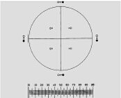 G57是目鏡分劃板的一種,主要應(yīng)用于制藥行業(yè),用于篩選和分析樣本中的顆粒物,檢測顆粒物的分布狀態(tài)。當(dāng)樣本顆粒直徑小于50µm或者顆粒數(shù)量在一定范圍內(nèi)時,G57適合做粒徑大小的分析。G57分劃板上的黑圓點和空心環(huán)分別代表顆粒直為10µm和25µm兩種,可作為與顆粒比對的參考。此外,一個帶刻度的水平比例尺也整合到其中。