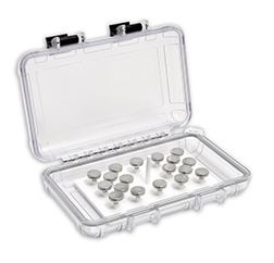 1.通用型儲(chǔ)存盒:盒子帶有內(nèi)襯和蓋子,可裝12個(gè)樣品臺(tái)(臺(tái)面直徑是10mm或者15mm的圓柱體;或者銷(xiāo)釘?shù)闹睆绞?span lang="EN-US">3.1mm的樣品臺(tái))。
